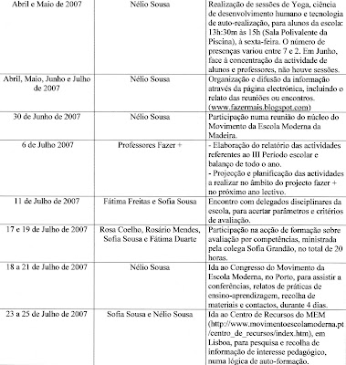 A formação, na nossa escola, em 2006, com José Augusto Fernandes (projecto SOFIA), a vinda à Calheta de José Pacheco (Escola da Ponte), e a formação do Movimento da Escola Moderna, liderado por Sérgio Niza, permitiu contactar e conhecer modelos e práticas de pedagogia diferenciada, em que os jovens são actores da sua aprendizagem e realizam o esforço necessário. Esse era um objectivo central do Fazer + durante 2006/07.